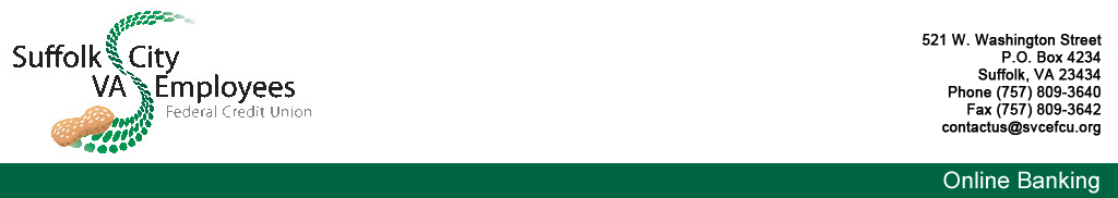 Online Banking access for Suffolk City VA Employees FCU is no longer available from this site.Please use the following address to access and bookmark the new site. Thank you. http://www.svcefcu.org/